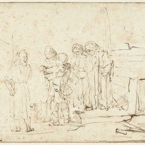 Rembrandt The Angel Shows the Fish to Tobias Rembrandt, Rembrandt drawings, Angel show